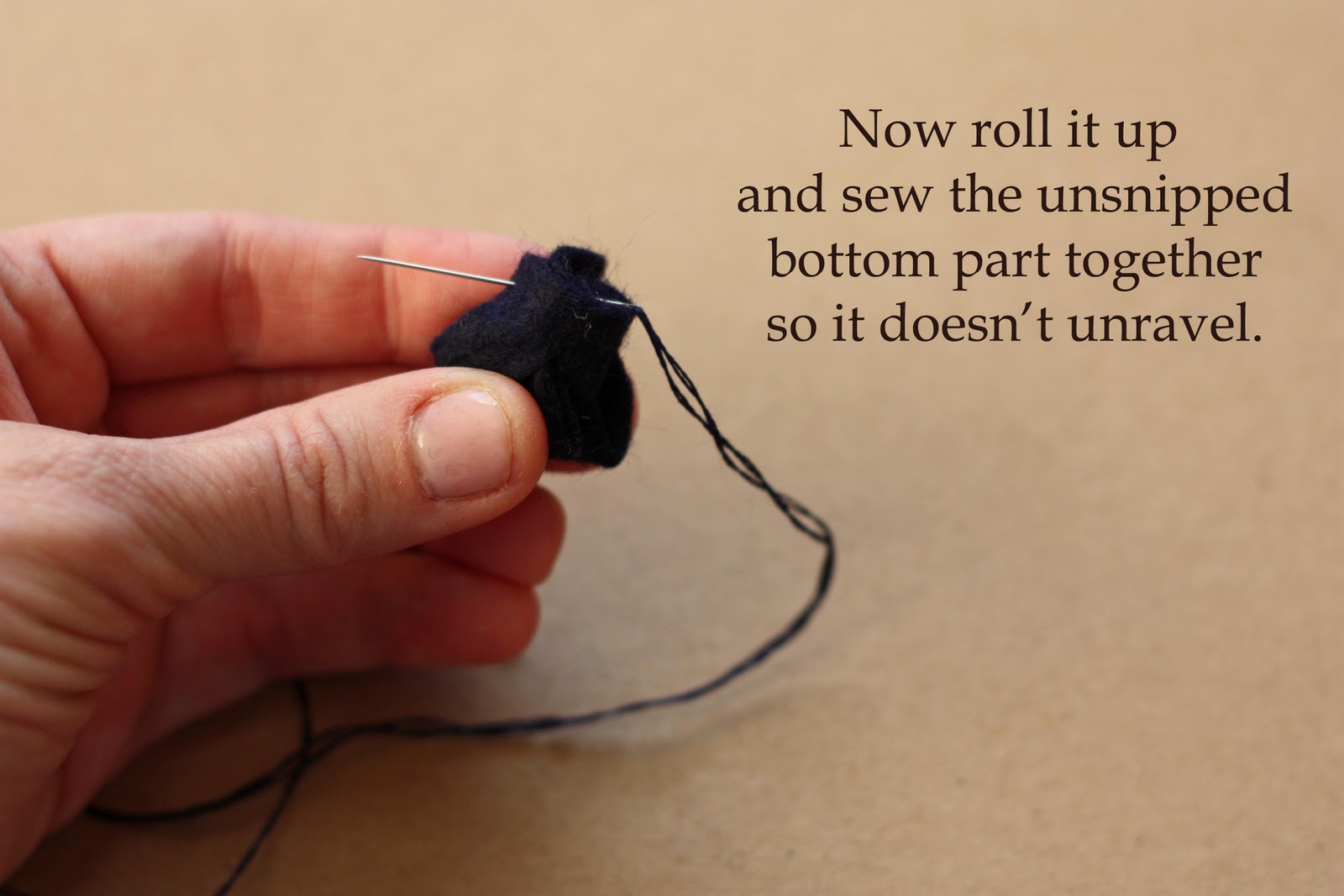 Supplies: E-6000 glue, a hair bobby pin, 2 felt leaves (about 2" long), 3 felt flowers (2 to 2.5" inches long), a felt rectangle (1.5" x 2.5" long), needle, thread, scissors.